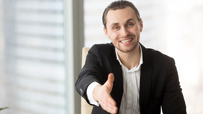 うなづきながら握手すると